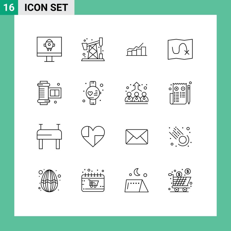 16 Universal Outlines Set for Web and Mobile Applications camera roll film ancient camera roll flowchart target map Editable Vector Design Elements