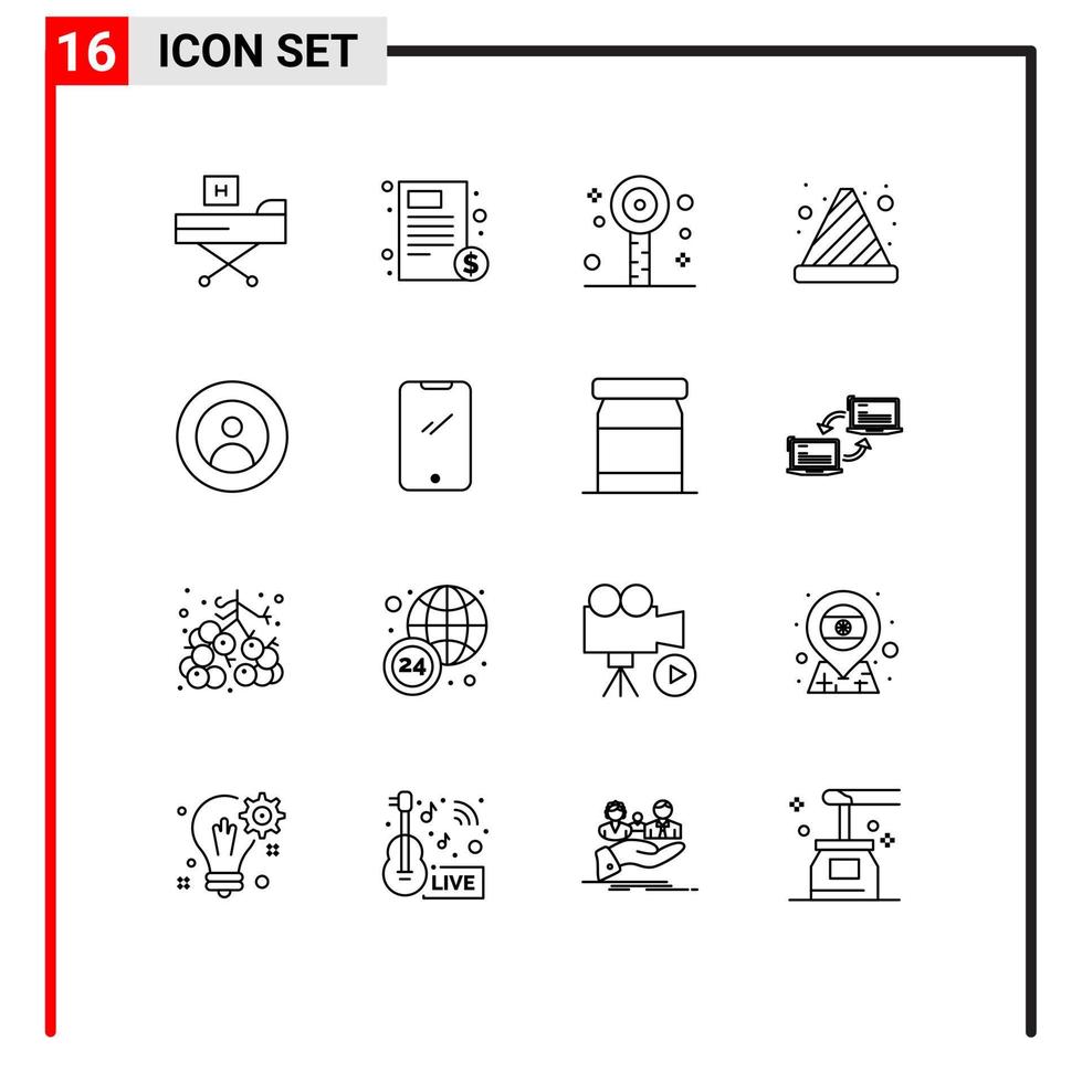 Pictogram Set of 16 Simple Outlines of traffic cone danger hospital cone party Editable Vector Design Elements