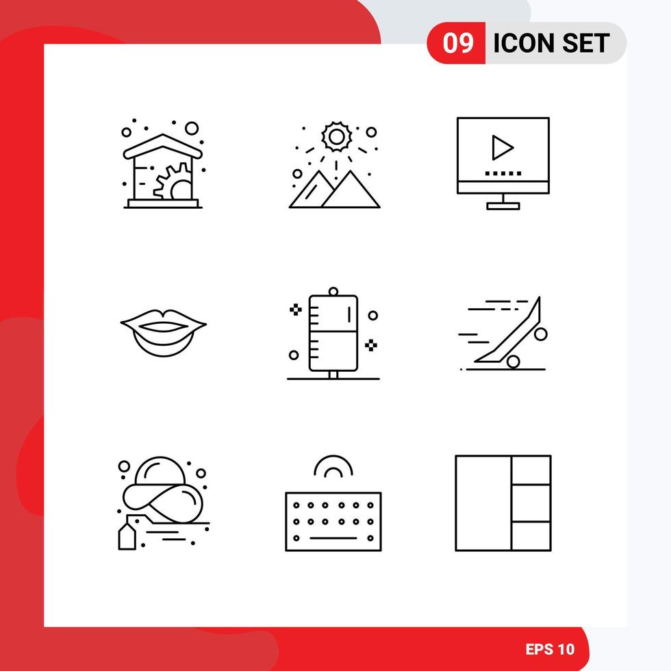 9 Universal Outlines Set for Web and Mobile Applications form enema image disease lips Editable Vector Design Elements