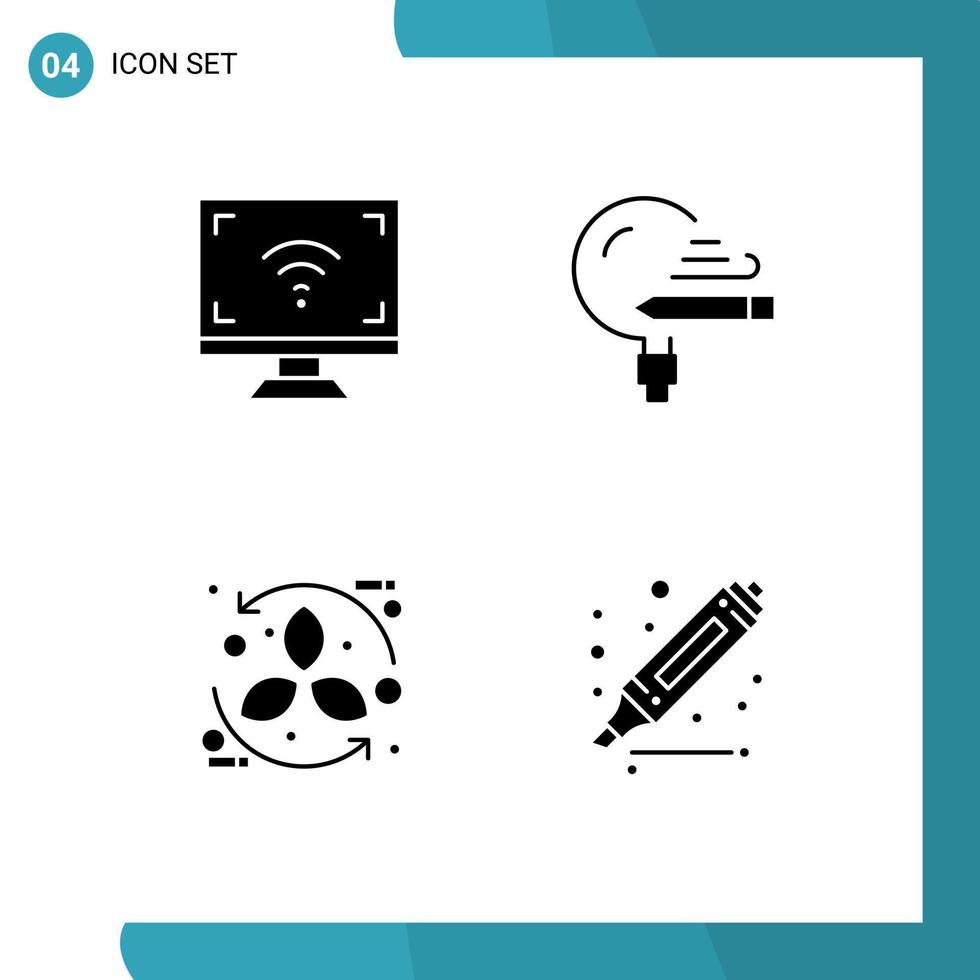 Set of 4 Vector Solid Glyphs on Grid for electronics study smart knowledge cycle Editable Vector Design Elements