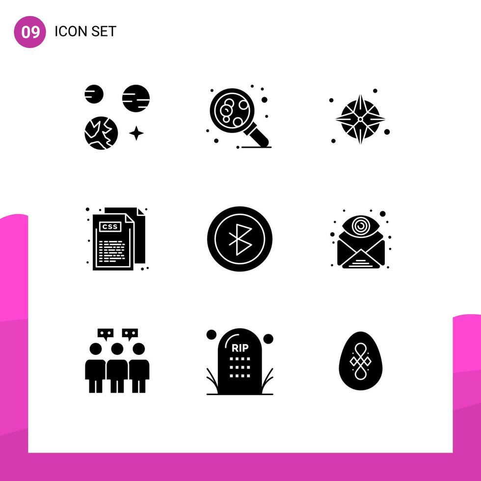Group of 9 Modern Solid Glyphs Set for connection style compass web code Editable Vector Design Elements