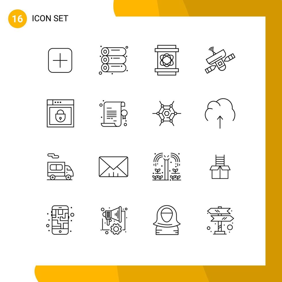 Modern Set of 16 Outlines and symbols such as password signal danger space antenna Editable Vector Design Elements Free Vector
