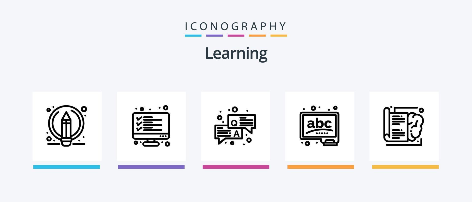 Learning Line 5 Icon Pack Including qa. result. light. list. computer. Creative Icons Design vector
