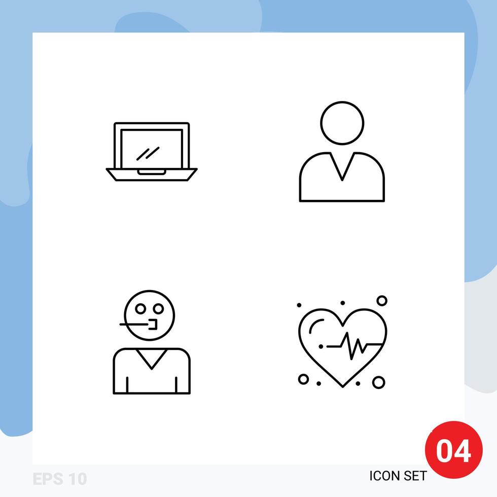 Set of 4 Modern UI Icons Symbols Signs for computer people hardware man support Editable Vector Design Elements