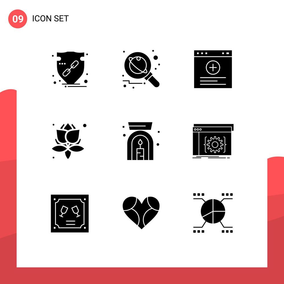 User Interface Pack of 9 Basic Solid Glyphs of lamp spa science plant website Editable Vector Design Elements Free Vector