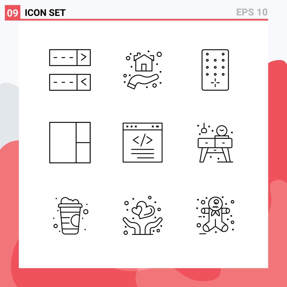 Stock Vector Icon Pack of 9 Line Signs and Symbols for interface coding control code layout Editable Vector Design Elements