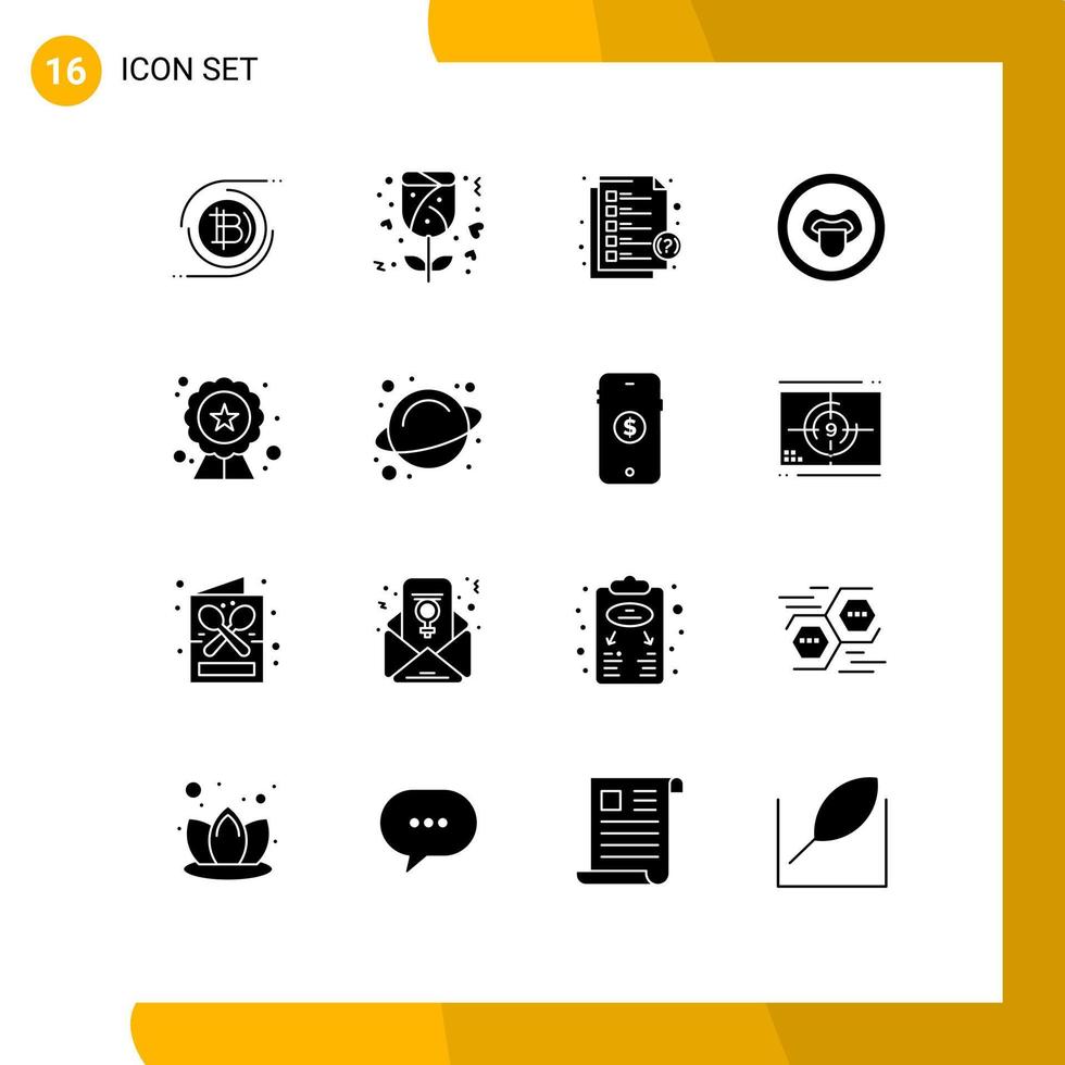 Pack of 16 Modern Solid Glyphs Signs and Symbols for Web Print Media such as badge quality help science lab Editable Vector Design Elements