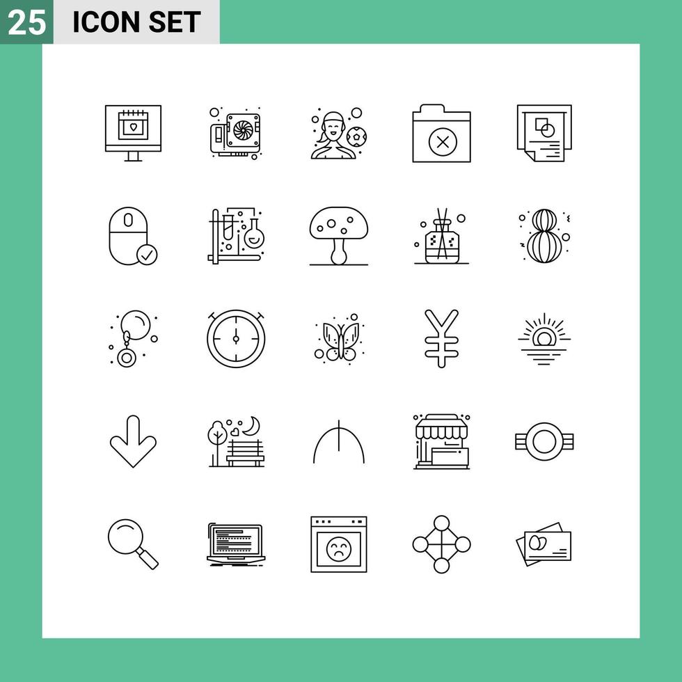 Set of 25 Modern UI Icons Symbols Signs for presentation graph female player folder delete Editable Vector Design Elements