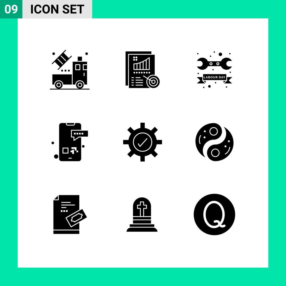Editable Vector Line Pack of 9 Simple Solid Glyphs of text phone badge message day Editable Vector Design Elements