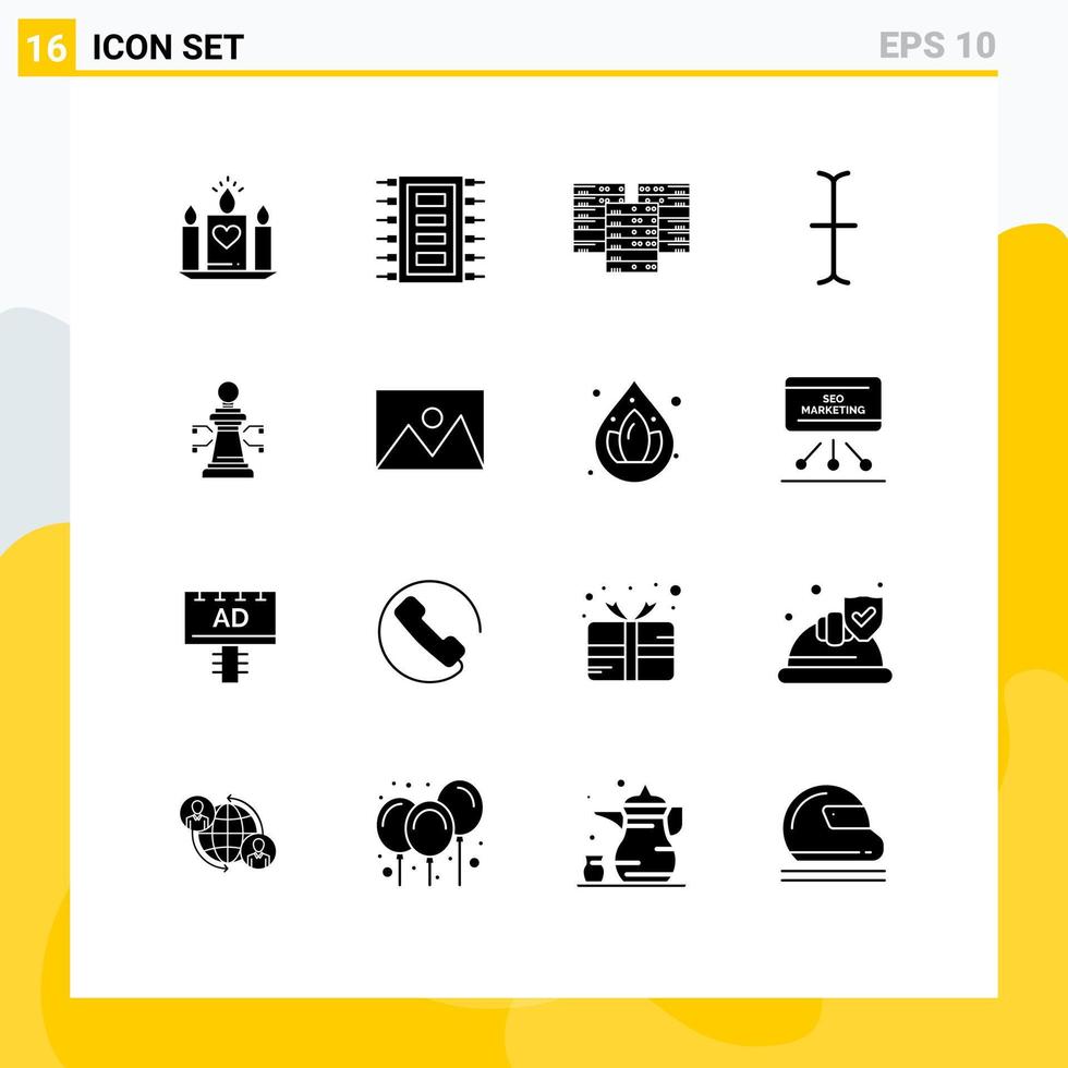 Mobile Interface Solid Glyph Set of 16 Pictograms of laptop input connect cursor database Editable Vector Design Elements