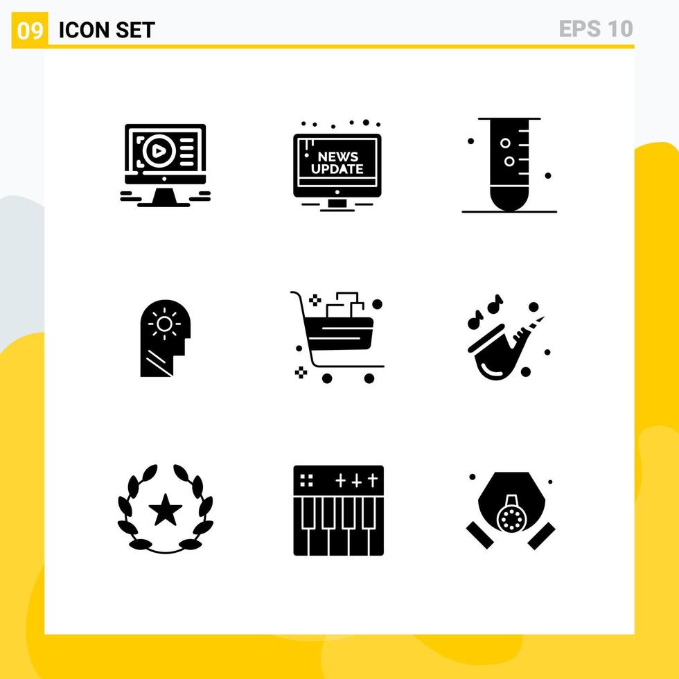Pack of 9 Modern Solid Glyphs Signs and Symbols for Web Print Media such as setting control update brain laboratory Editable Vector Design Elements