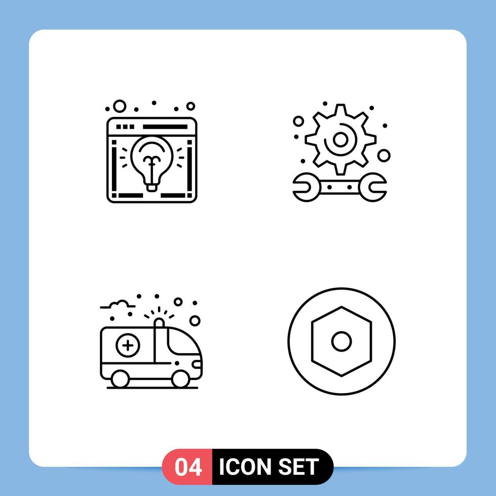4 Line concept for Websites Mobile and Apps browser ambulance launch education health Editable Vector Design Elements
