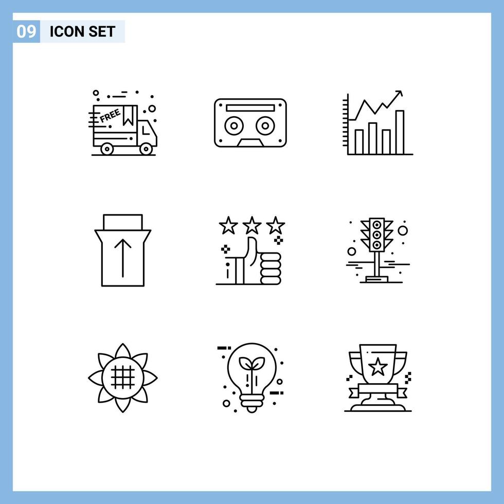 Editable Vector Line Pack of 9 Simple Outlines of tumbs like analysis touch gesture Editable Vector Design Elements Free Vector