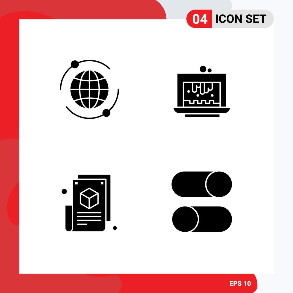 Pack of 4 Modern Solid Glyphs Signs and Symbols for Web Print Media such as world blogger baking cake web blogging Editable Vector Design Elements