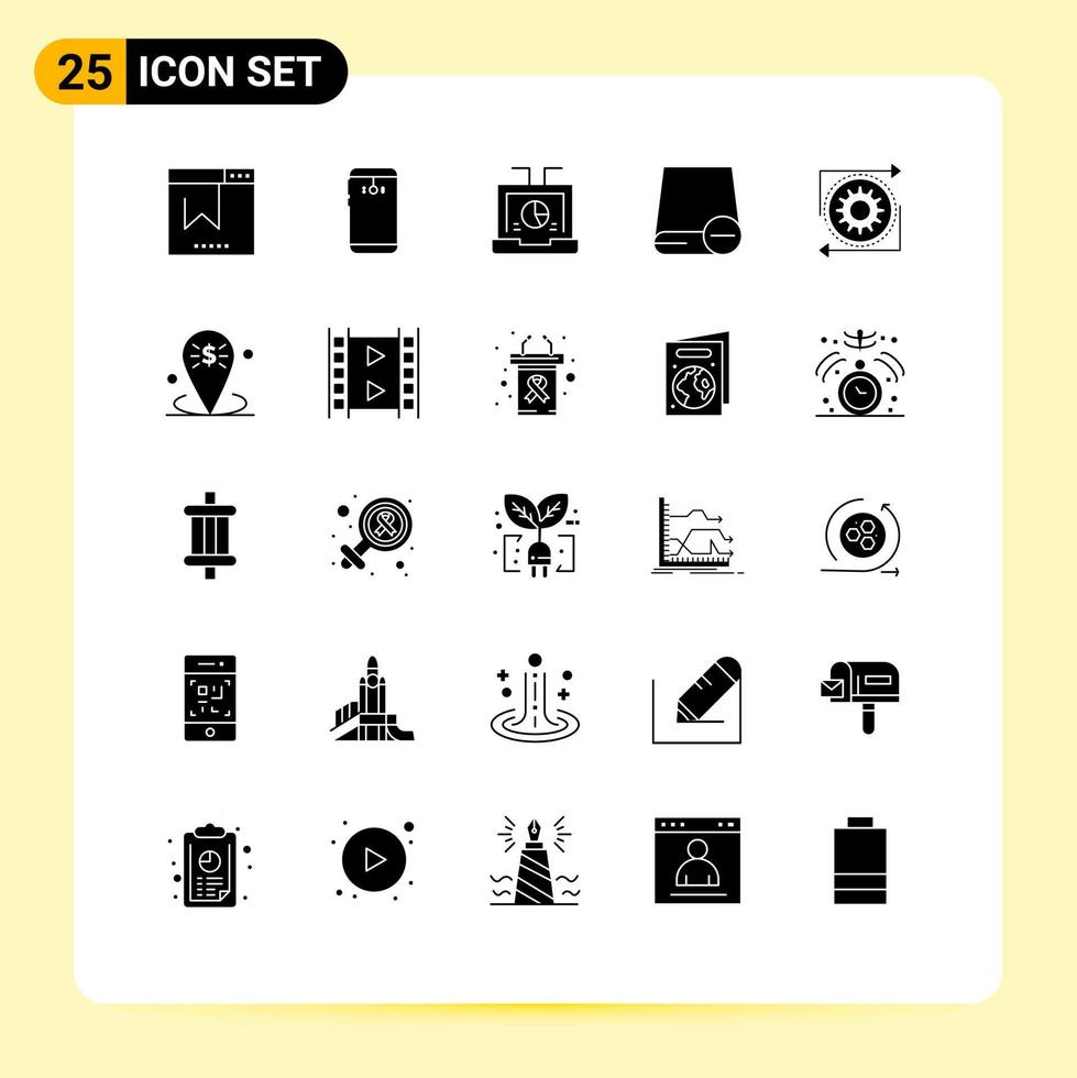 Group of 25 Modern Solid Glyphs Set for gadget devices back computers report Editable Vector Design Elements