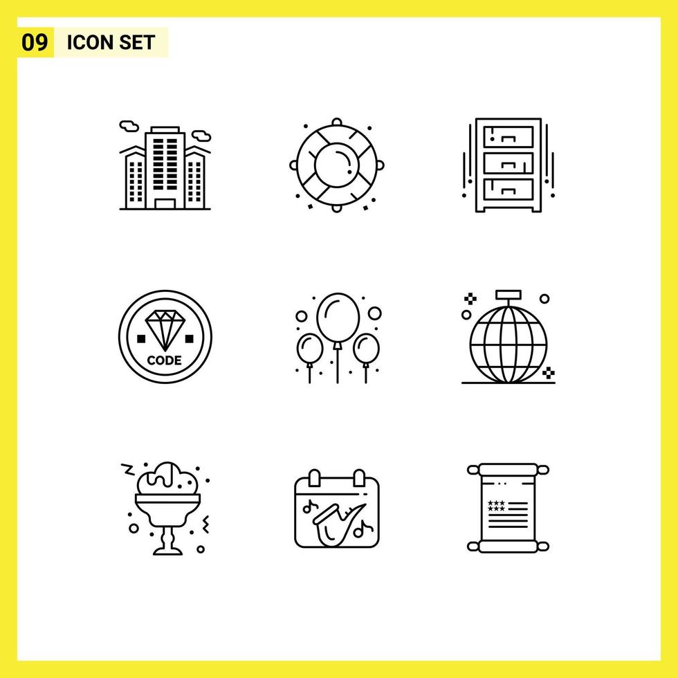 Set of 9 Vector Outlines on Grid for development coding rescue code office draw Editable Vector Design Elements Free Vector
