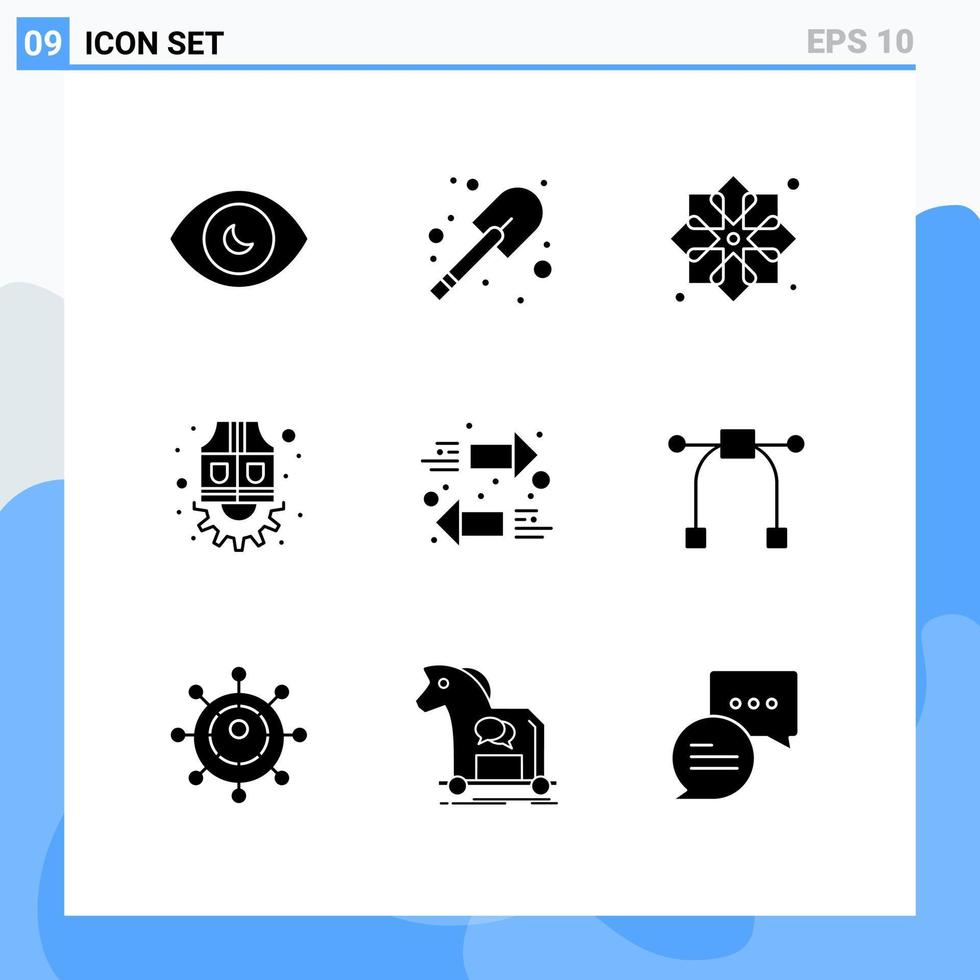 Group of 9 Modern Solid Glyphs Set for arrows gear pattern labour jacket Editable Vector Design Elements Free Vector