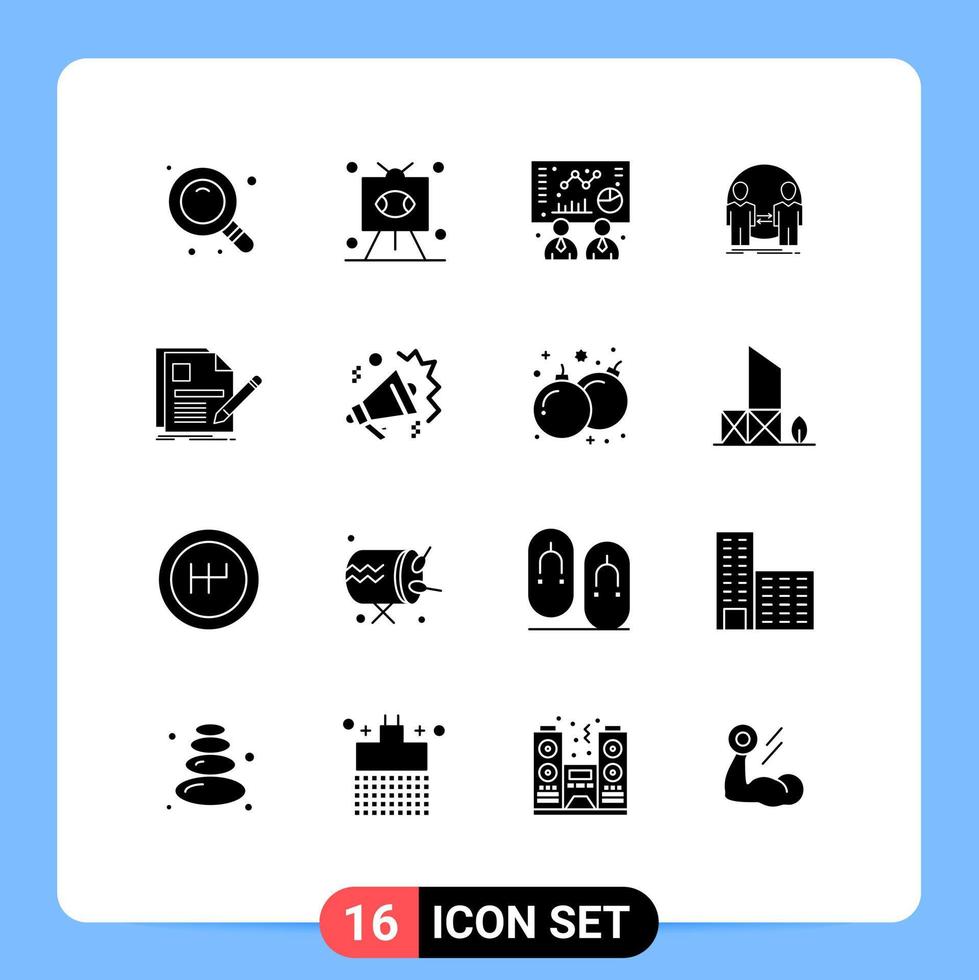 16 Thematic Vector Solid Glyphs and Editable Symbols of file duplicate business identity clone Editable Vector Design Elements