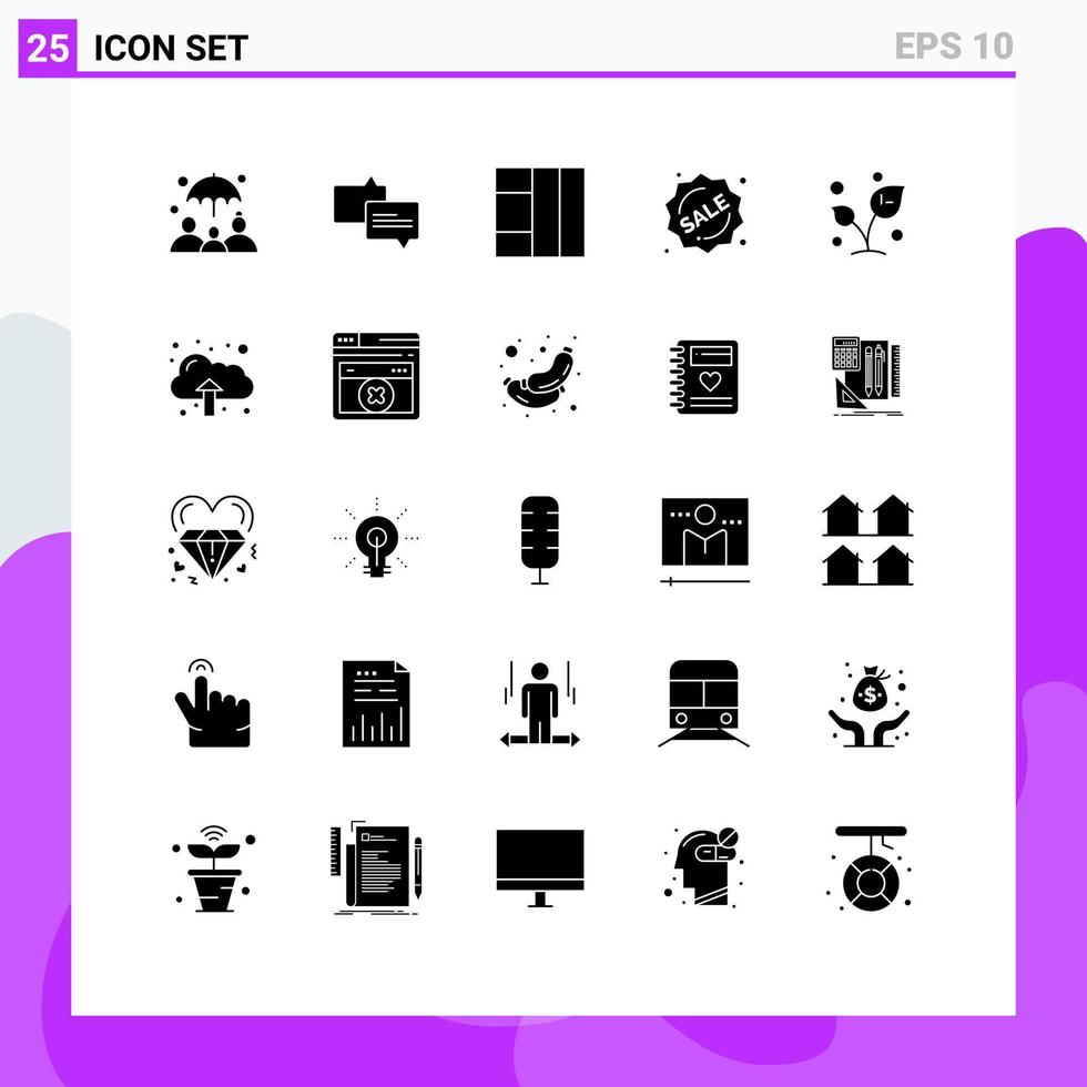 Mobile Interface Solid Glyph Set of 25 Pictograms of cloud sprout badge spring leaf Editable Vector Design Elements Free Vector