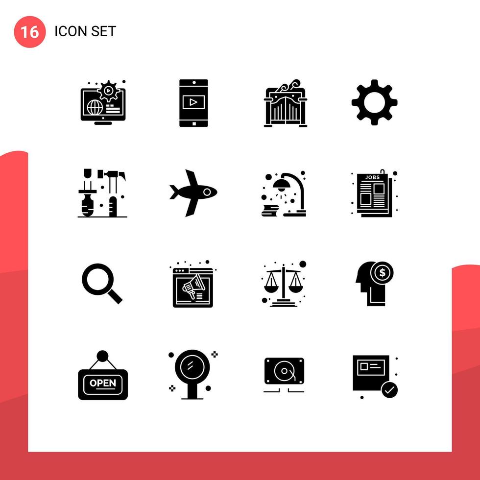 User Interface Pack of 16 Basic Solid Glyphs of screwdriver construction video gear cog Editable Vector Design Elements Free Vector