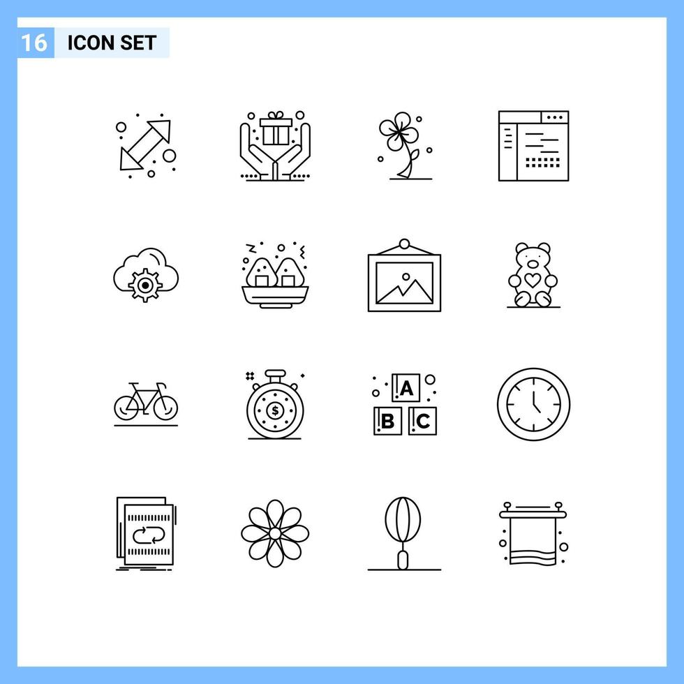 Set of 16 Vector Outlines on Grid for cloud page floral development code Editable Vector Design Elements Free Vector