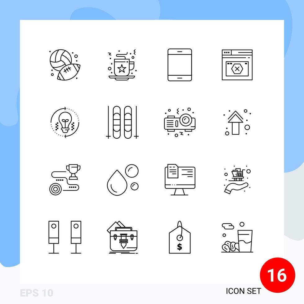 Mobile Interface Outline Set of 16 Pictograms of error web computers page ipad Editable Vector Design Elements