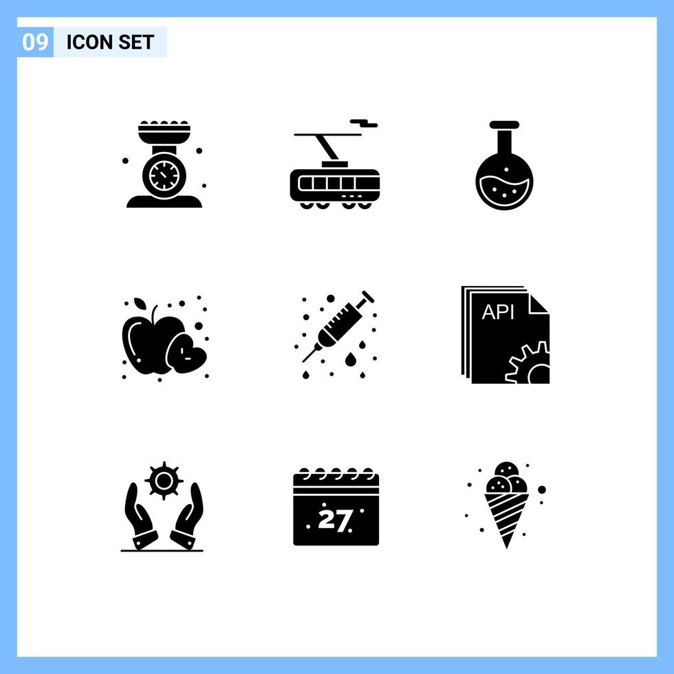 9 Universal Solid Glyphs Set for Web and Mobile Applications health food transport apple test Editable Vector Design Elements Free Vector