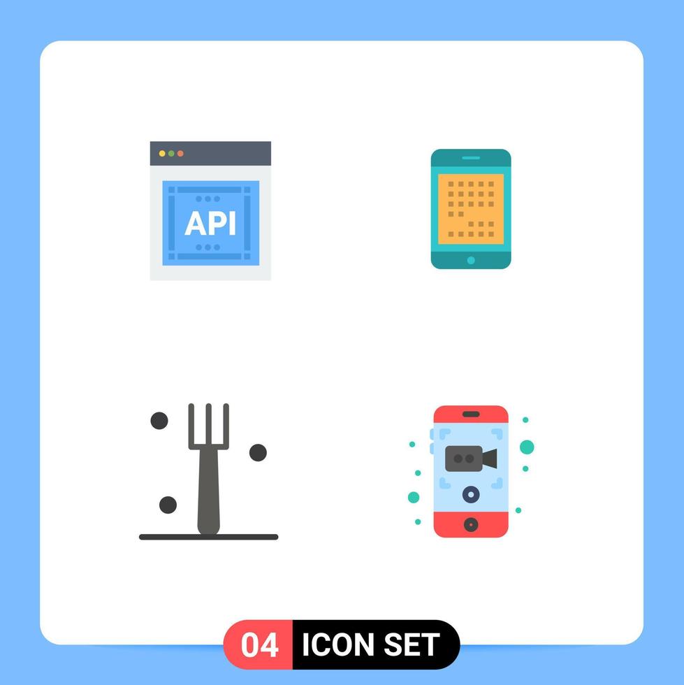 Modern Set of 4 Flat Icons Pictograph of api mobile software device kitchen Editable Vector Design Elements
