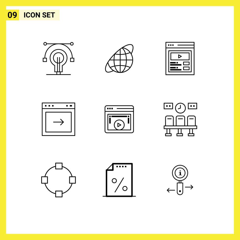 Mobile Interface Outline Set of 9 Pictograms of display website custom content right arrow Editable Vector Design Elements Free Vector