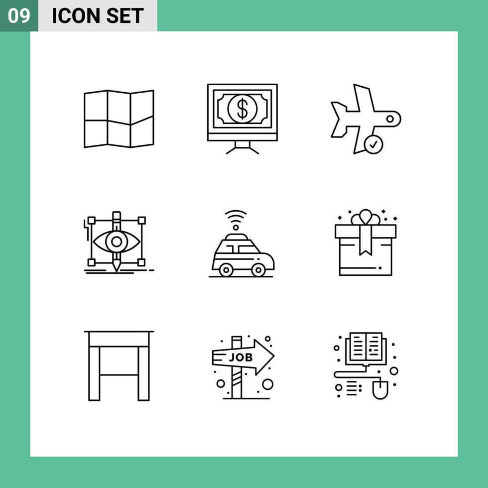 Mobile Interface Outline Set of 9 Pictograms of car sketching flight sketch design Editable Vector Design Elements