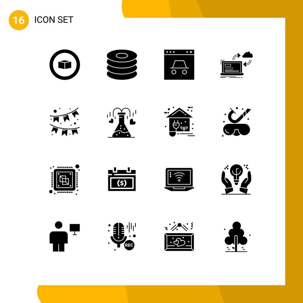 Solid Glyph Pack of 16 Universal Symbols of celebration dashboard page data sync Editable Vector Design Elements