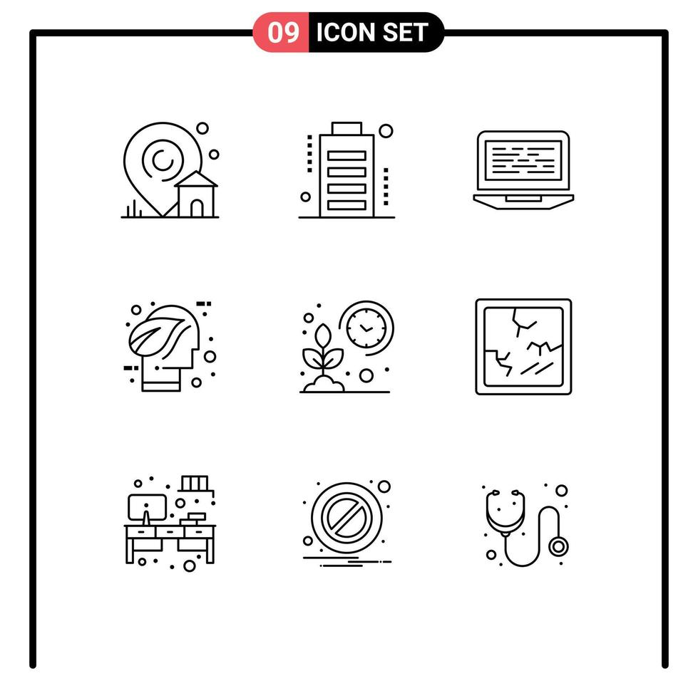 User Interface Pack of 9 Basic Outlines of green ecology status eco screen Editable Vector Design Elements Free Vector