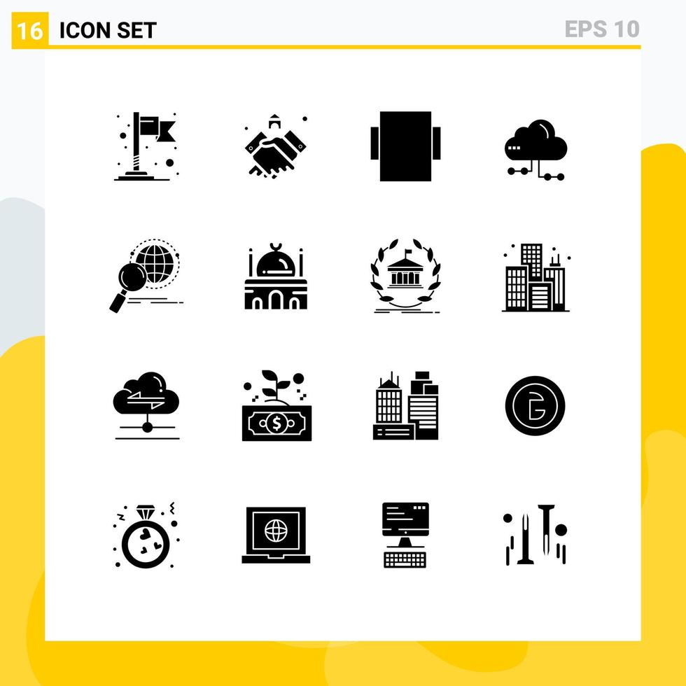 Universal Icon Symbols Group of 16 Modern Solid Glyphs of research globe layout global computing Editable Vector Design Elements Free Vector
