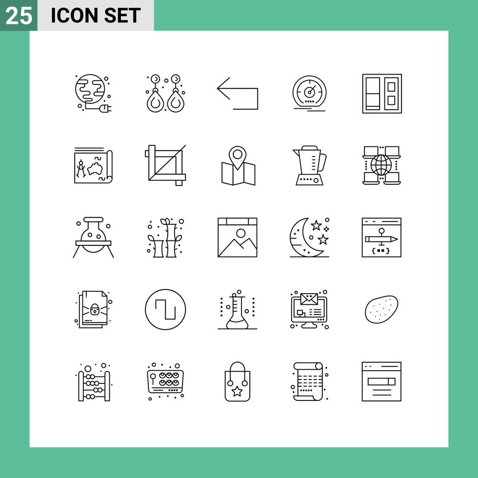 Set of 25 Modern UI Icons Symbols Signs for speedometer meter valuable dashboard reply Editable Vector Design Elements