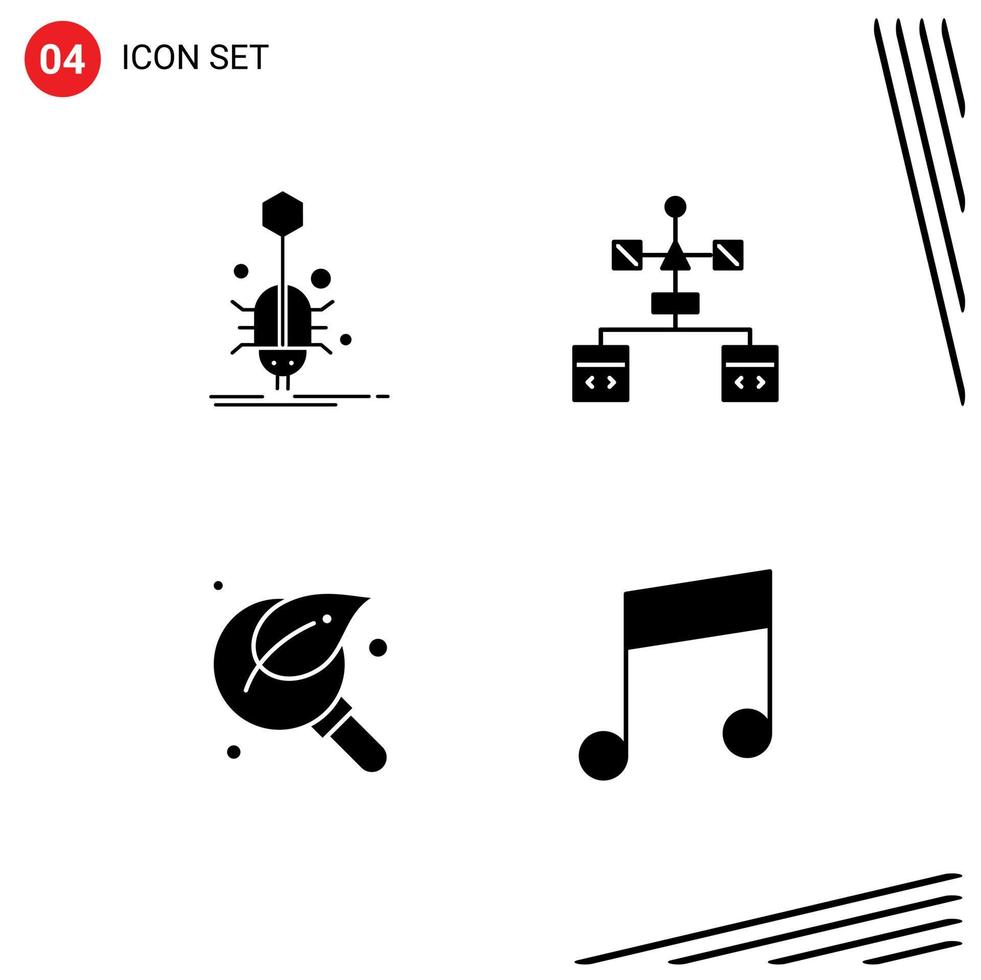 Pictogram Set of 4 Simple Solid Glyphs of bug development virus browser green Editable Vector Design Elements