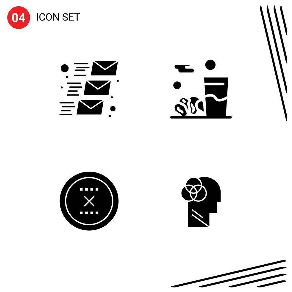 Set of 4 Vector Solid Glyphs on Grid for email circle email message iftar delete Editable Vector Design Elements
