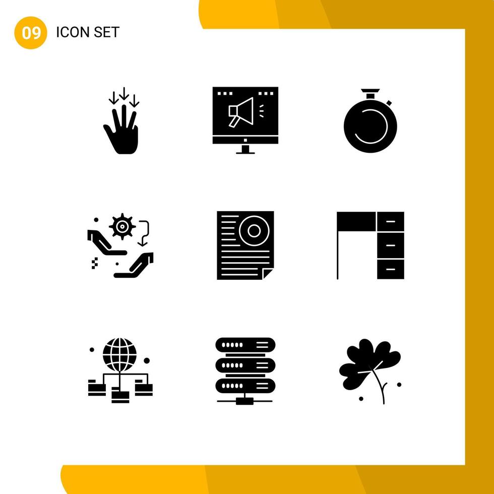 9 User Interface Solid Glyph Pack of modern Signs and Symbols of setting setup camposs hand watch Editable Vector Design Elements
