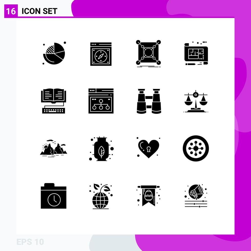 User Interface Pack of 16 Basic Solid Glyphs of floor blue web architecture data Editable Vector Design Elements