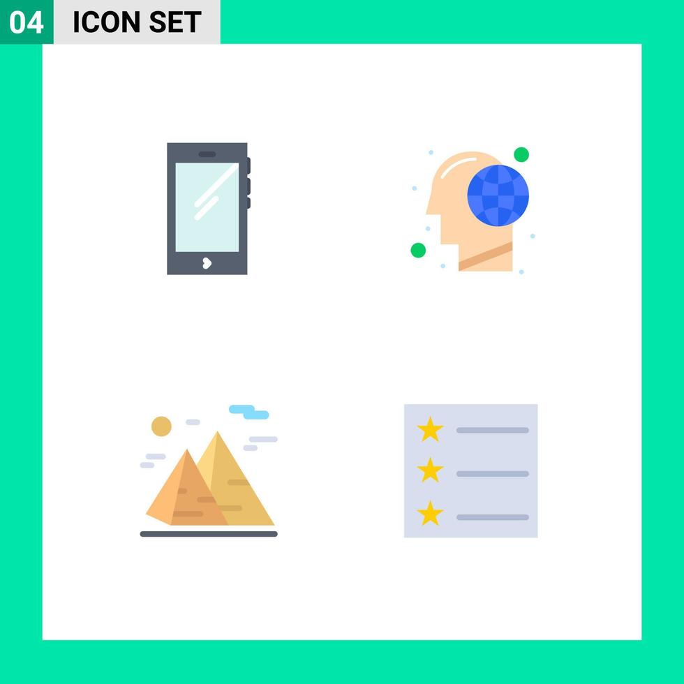 Mobile Interface Flat Icon Set of 4 Pictograms of phone mind android global hiking Editable Vector Design Elements