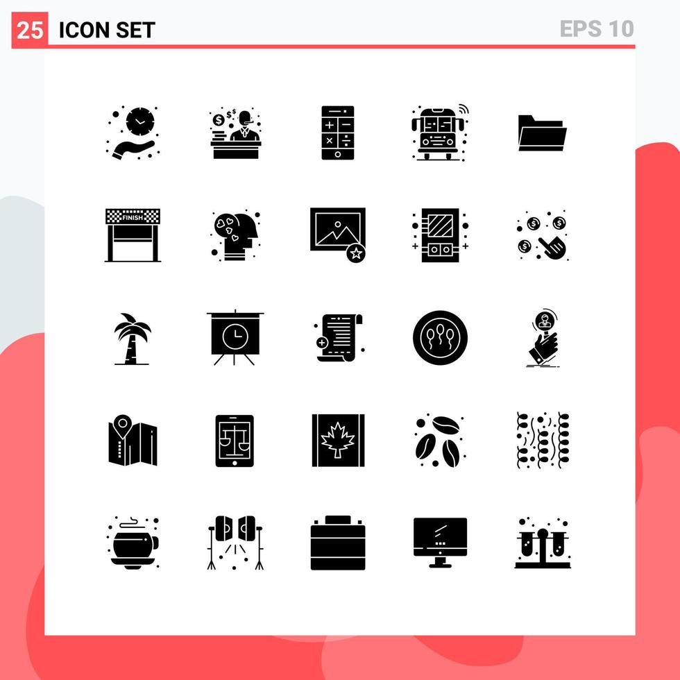 Pictogram Set of 25 Simple Solid Glyphs of open transport calculator smart bus Editable Vector Design Elements Free Vector