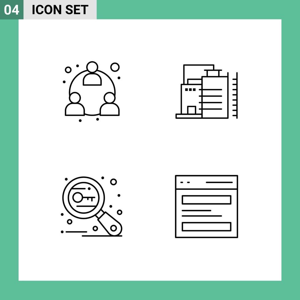 Set of 4 Modern UI Icons Symbols Signs for business keywords network factory search Editable Vector Design Elements