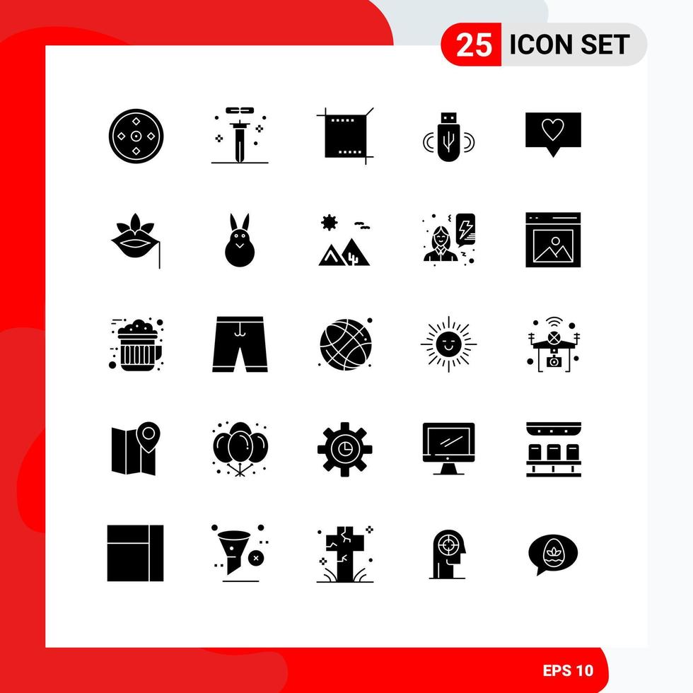Set of 25 Vector Solid Glyphs on Grid for like data science share web Editable Vector Design Elements Free Vector