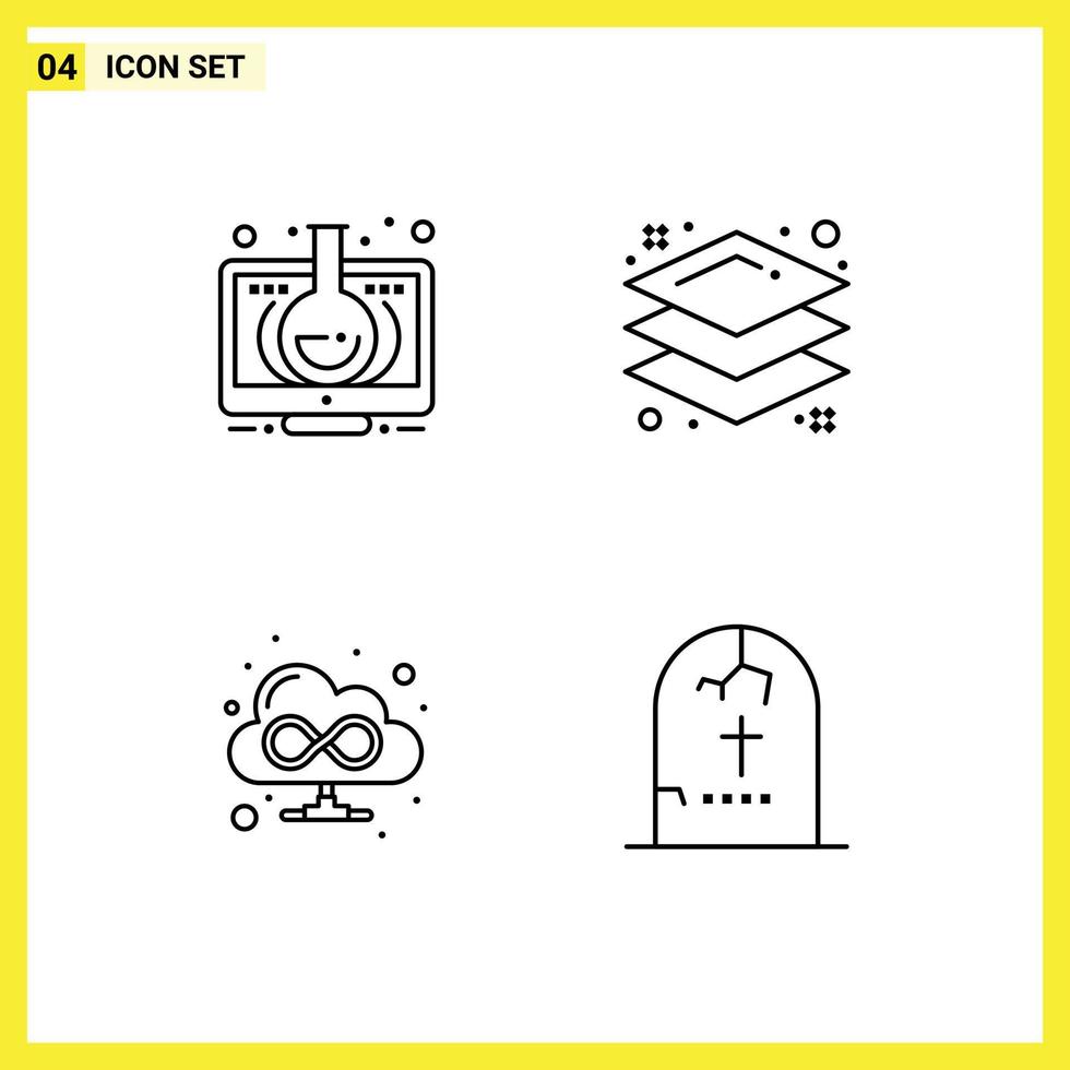 Set of 4 Modern UI Icons Symbols Signs for elearning cloud monitor layer death Editable Vector Design Elements