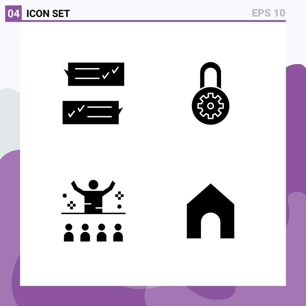 Editable Vector Line Pack of 4 Simple Solid Glyphs of chat conference speech bubble lock motivation Editable Vector Design Elements