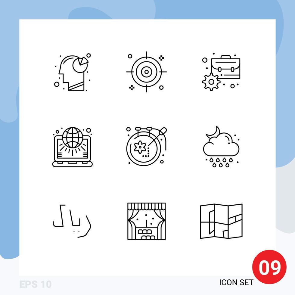 9 User Interface Outline Pack of modern Signs and Symbols of craft marketing business world net Editable Vector Design Elements Free Vector