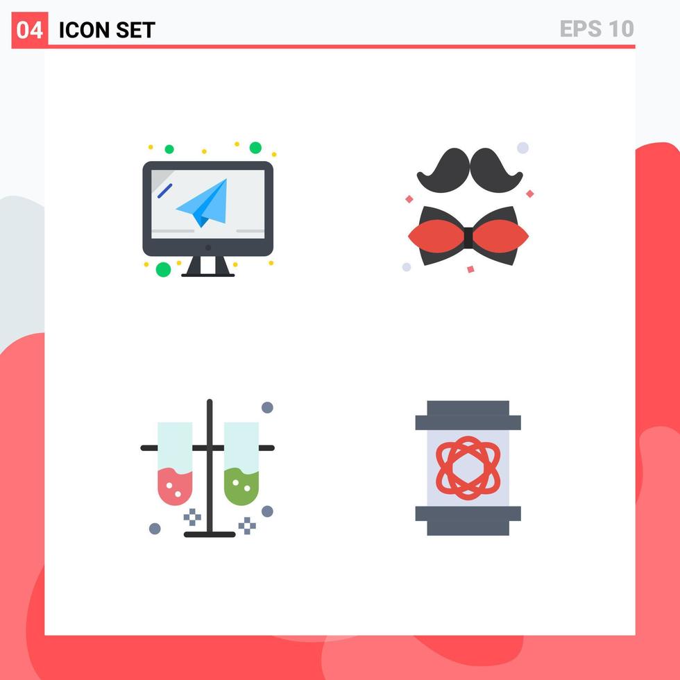 4 Universal Flat Icon Signs Symbols of computer lab test tubes mail tie laboratory test tubes Editable Vector Design Elements Free Vector