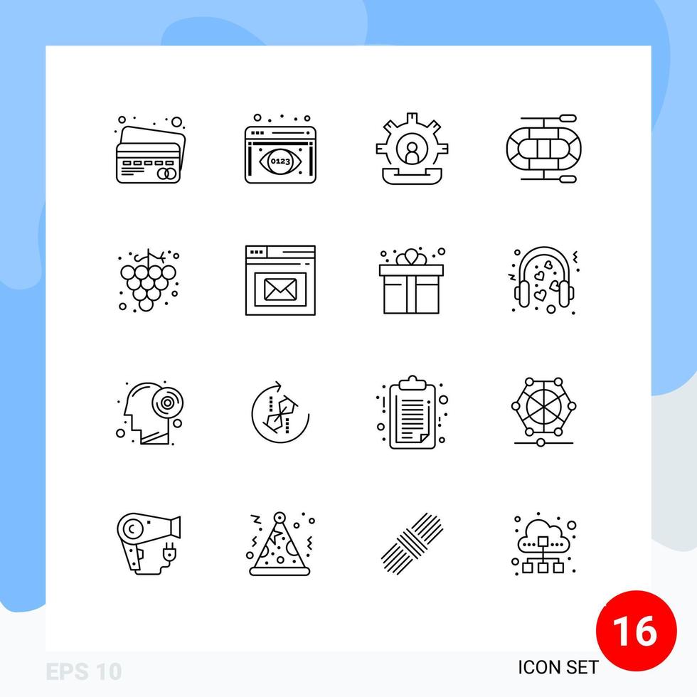 User Interface Pack of 16 Basic Outlines of inbox grape help fruit dinghy Editable Vector Design Elements
