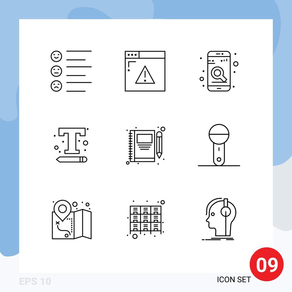 Mobile Interface Outline Set of 9 Pictograms of book text settings app text font Editable Vector Design Elements