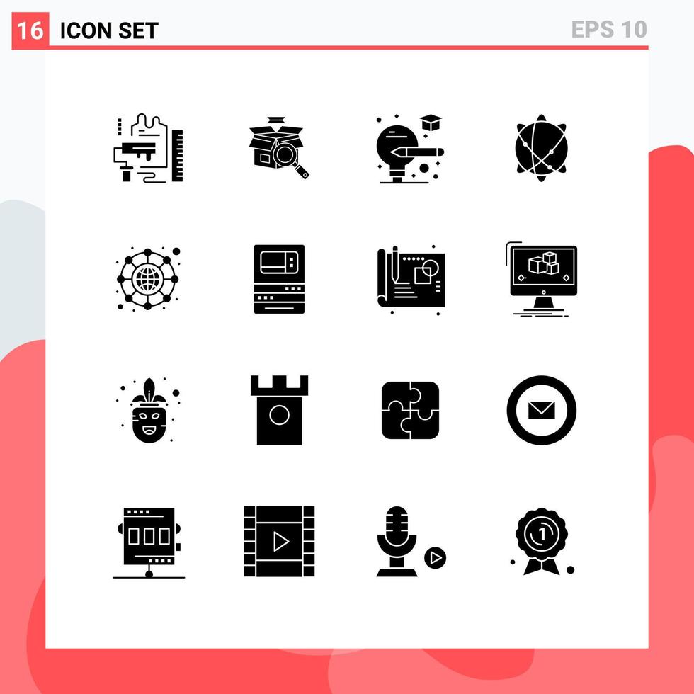 Universal Icon Symbols Group of 16 Modern Solid Glyphs of hierarchy world e shopping internet computing Editable Vector Design Elements Free Vector