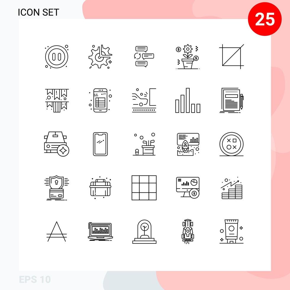 Pack of 25 Modern Lines Signs and Symbols for Web Print Media such as education business configuration robot dialogue Editable Vector Design Elements